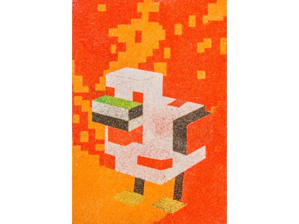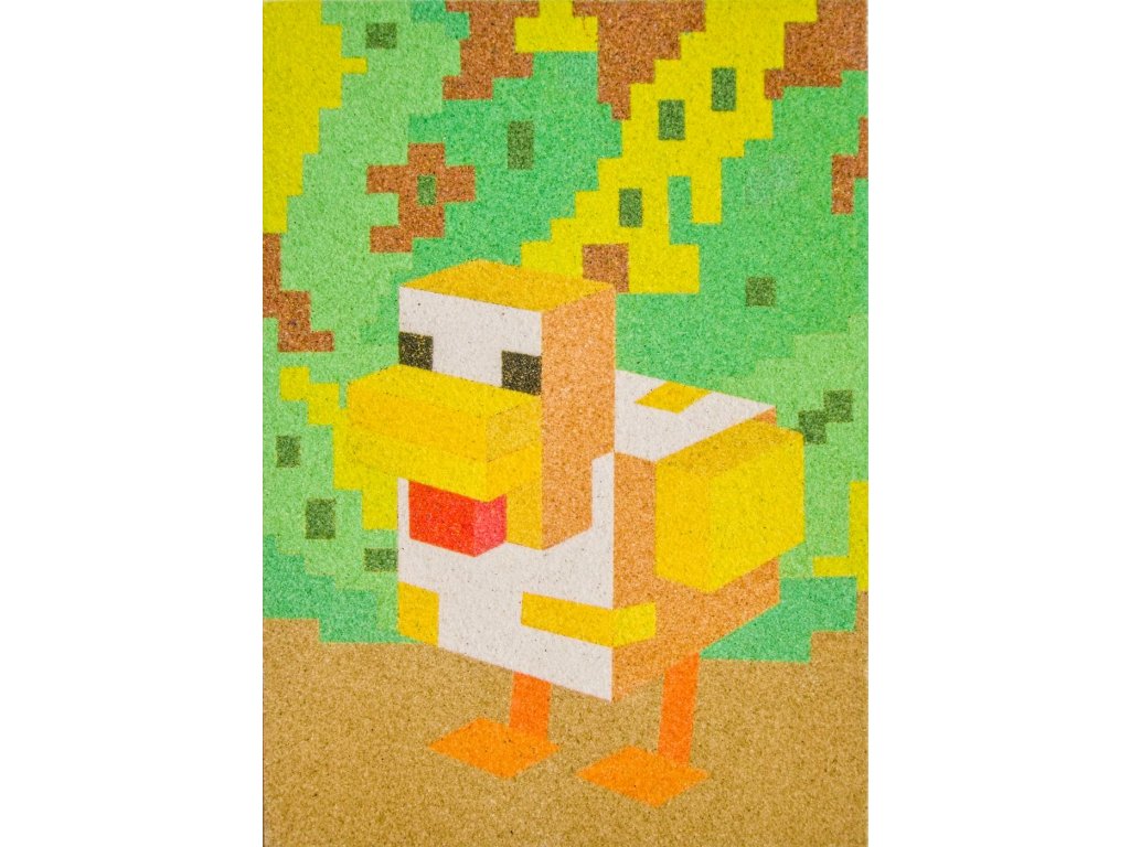 Na odkrytou část lepící plochy nasypeme písek dle vlastního výběru. Volit lze z více než 50 barevných odstínů, třpytek nebo svíticího písku. Písek lze aplikovat pomocí prstů či různých nástrojů včetně obyčejné lžičky.