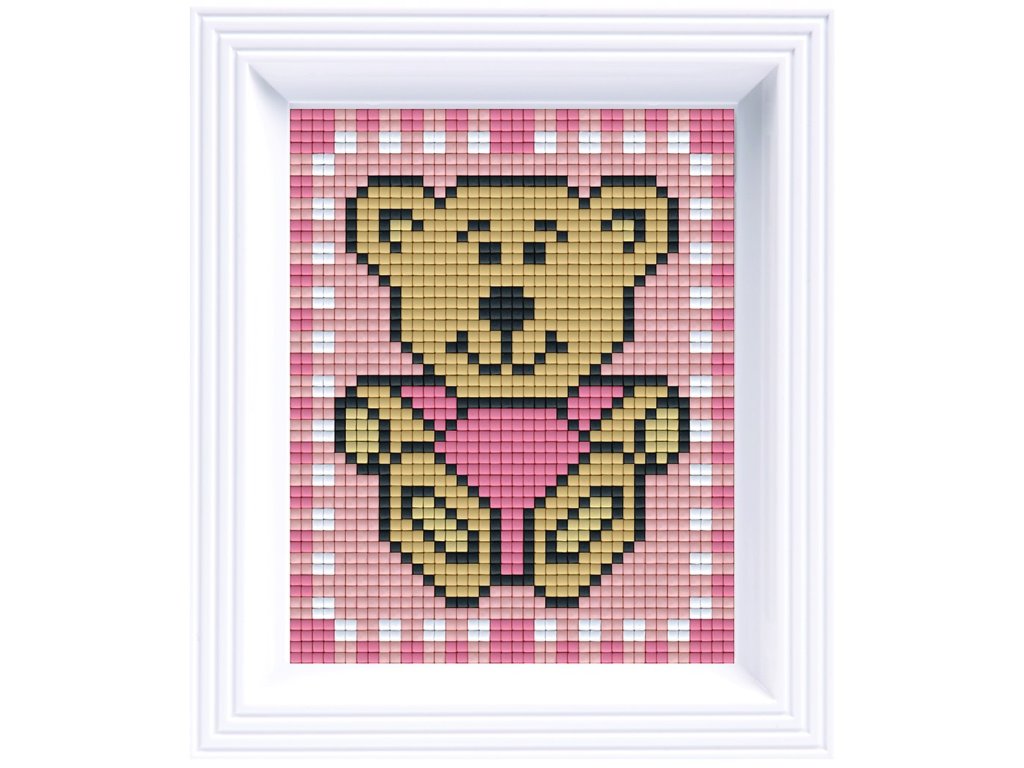 Obrázek s rámečkem 18 barev - růžový medvěd