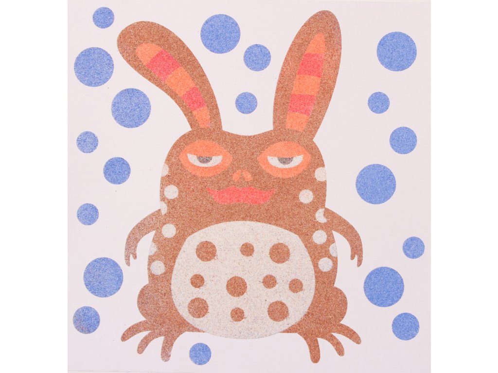 Na odkrytou část lepící plochy nasypeme písek dle vlastního výběru. Volit lze z více než 50 barevných odstínů, třpytek nebo svíticího písku. Písek lze aplikovat pomocí prstů či různých nástrojů včetně obyčejné lžičky.