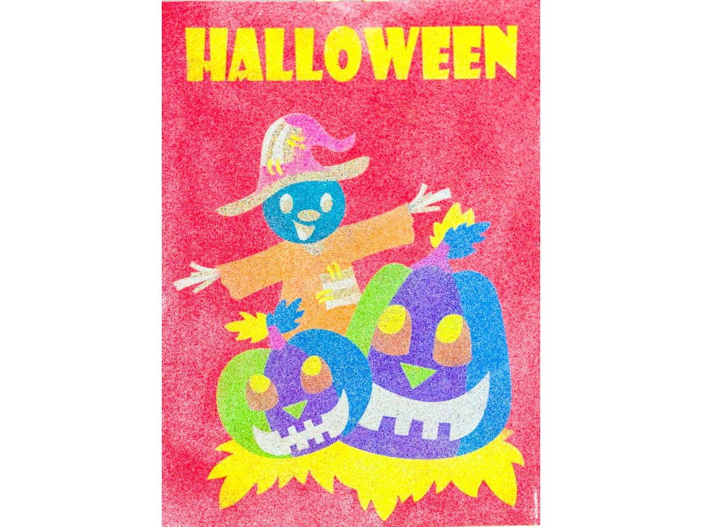 Strašák Halloween vnáší do zamlženého kraje přátelskou energii, kdy jeho široký úsměv i dvojice dýní společně oživují veselou atmosféru. Pod jeho kloboukem a rozpřaženými pažemi se rodí malebné podzimní kouzlo, jež láká k odvážným barevným kombinacím a radostné tvorbě.