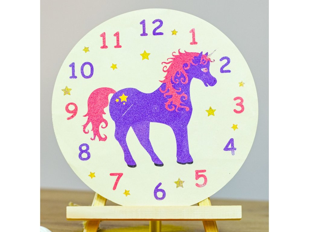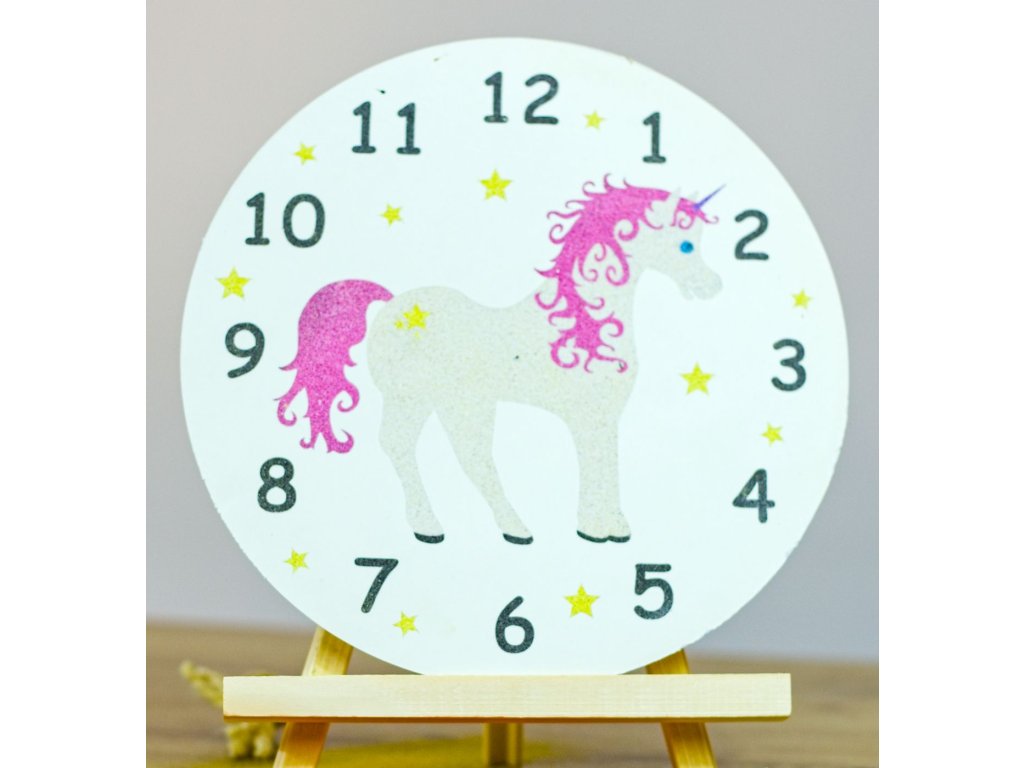Hodiny jednorožec - Barevné pískování obrázků