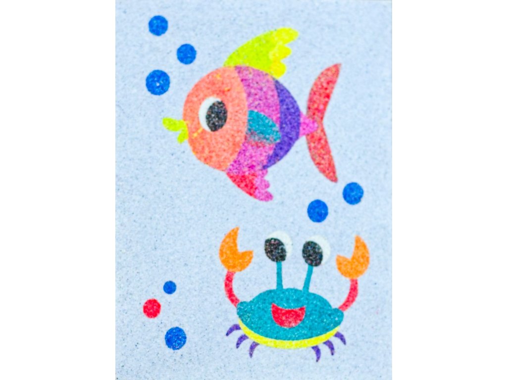 Na odkrytou část lepící plochy nasypeme písek dle vlastního výběru. Volit lze z více než 50 barevných odstínů, třpytek nebo svíticího písku. Písek lze aplikovat pomocí prstů či různých nástrojů včetně obyčejné lžičky.