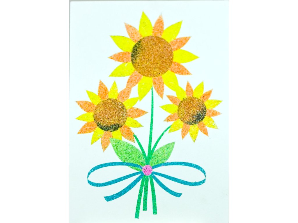 Na odkrytou část lepící plochy nasypeme písek dle vlastního výběru. Volit lze z více než 50 barevných odstínů, třpytek nebo svíticího písku. Písek lze aplikovat pomocí prstů či různých nástrojů včetně obyčejné lžičky.
