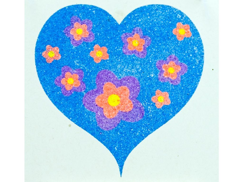 Na odkrytou část lepící plochy nasypeme písek dle vlastního výběru. Volit lze z více než 50 barevných odstínů, třpytek nebo svíticího písku. Písek lze aplikovat pomocí prstů či různých nástrojů včetně obyčejné lžičky.