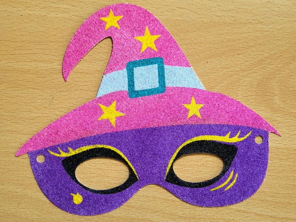Maska na obličej s předřezaným motivem. V balení je i gumička pro připevnění na hlavu. Stačí pár barviček barevného písku a dětská zábava může začít.