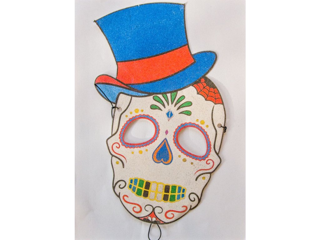 Maska na obličej s předřezaným motivem. V balení je i gumička pro připevnění na hlavu. Stačí pár barviček barevného písku a dětská zábava může začít.