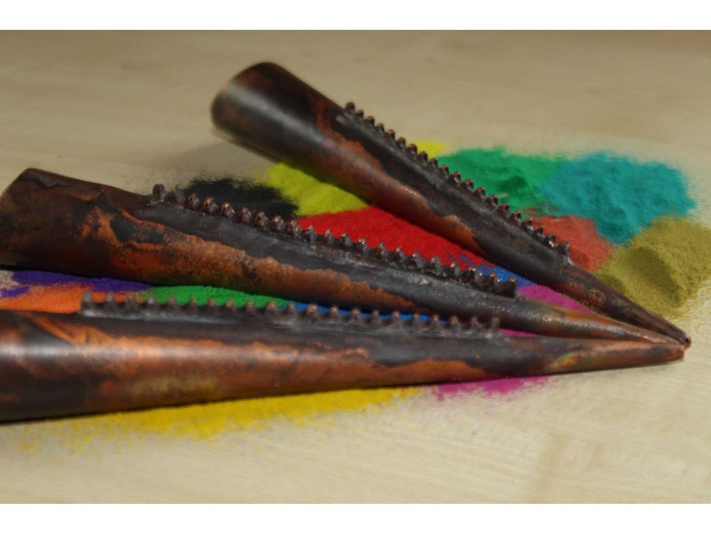 Naše Chak-pury jsou vyrobeny v České republice v dílně šikovného uměleckého kováře. Jak Chak-pur tak tyčka jsou z čisté mědi. Každý kus je originální a zabalen v praktickém pytlíčku pro uchování nástroje.