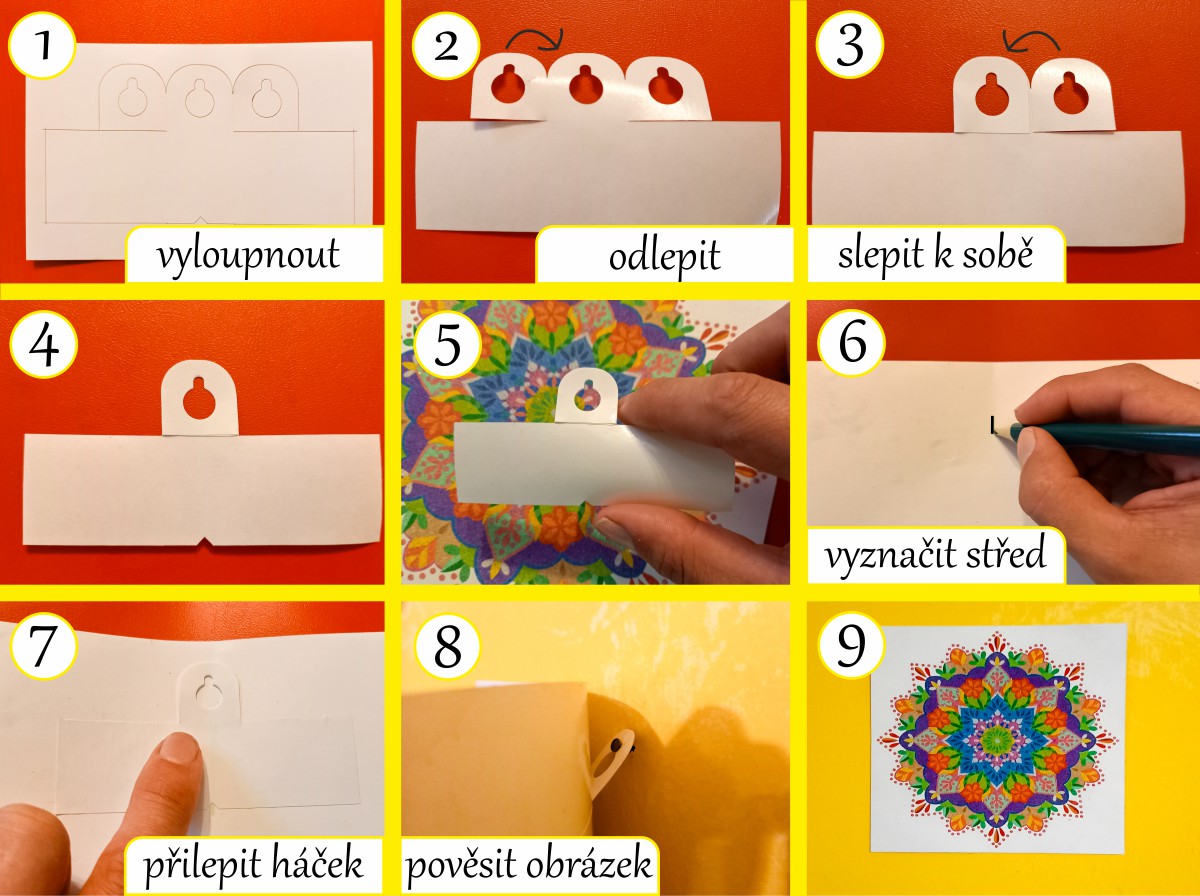 Univerzální závěsný háček na vypískované obrázky. Háček má silné lepidlo. Doporučujeme pro obrázky do velikosti A3, poté se začnou samy ohýbat rohy obrázků. Větší je možné zavěsit na 2 háčky, přesto doporučujeme větší obrázky do rámečku.