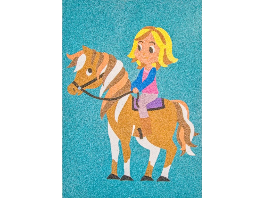 Na odkrytou část lepící plochy nasypeme písek dle vlastního výběru. Volit lze z více než 50 barevných odstínů, třpytek nebo svíticího písku. Písek lze aplikovat pomocí prstů či různých nástrojů včetně obyčejné lžičky.