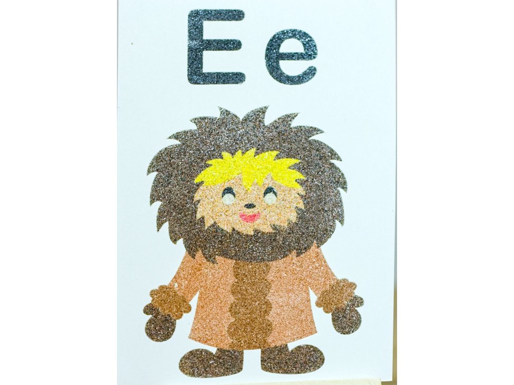 Zasněžená krajina, mrazivý vítr a Eskymák usmívající se zpod teplé kapuce – to vše najdete na této šabloně zobrazující písmeno E. Tato šablona na pískování propojuje svět písmen s kreativitou, přičemž barevný písek vám pomůže utvořit vlastní polární pohádku.