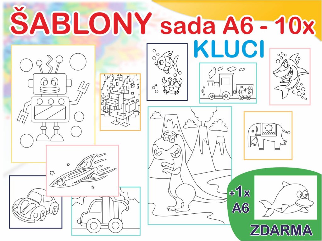 Sada šablon k tvoření s barevným pískem. Motivy jsou vyobrazeny na hlavním obrázku.