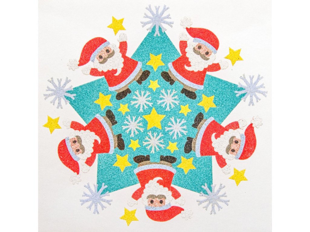 Na odkrytou část lepící plochy nasypeme písek dle vlastního výběru. Volit lze z více než 50 barevných odstínů, třpytek nebo svíticího písku. Písek lze aplikovat pomocí prstů či různých nástrojů včetně obyčejné lžičky.