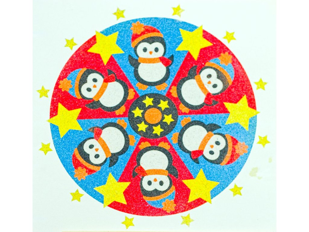 Naše samolepicí šablona na pískování je vyřezána na speciálním papíru, který je ideální pro tuto kreativní techniku. Stačí sloupnout ochrannou fólii, nasypat barevný písek a sledovat, jak se motiv proměňuje v nádherný pískový obrázek plný barev a detailů.