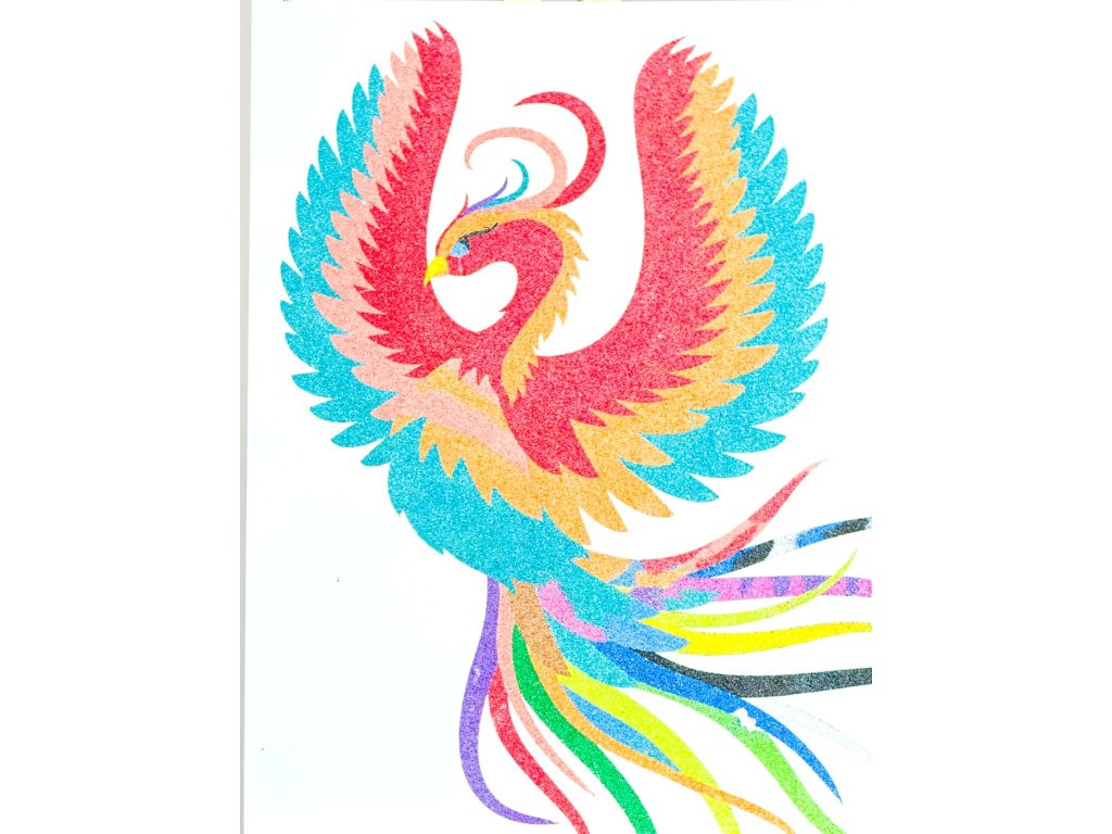 Naše samolepicí šablona na pískování je vyřezána na speciálním papíru, který je ideální pro tuto kreativní techniku. Stačí sloupnout ochrannou fólii, nasypat barevný písek a sledovat, jak se motiv proměňuje v nádherný pískový obrázek plný barev a detailů.
