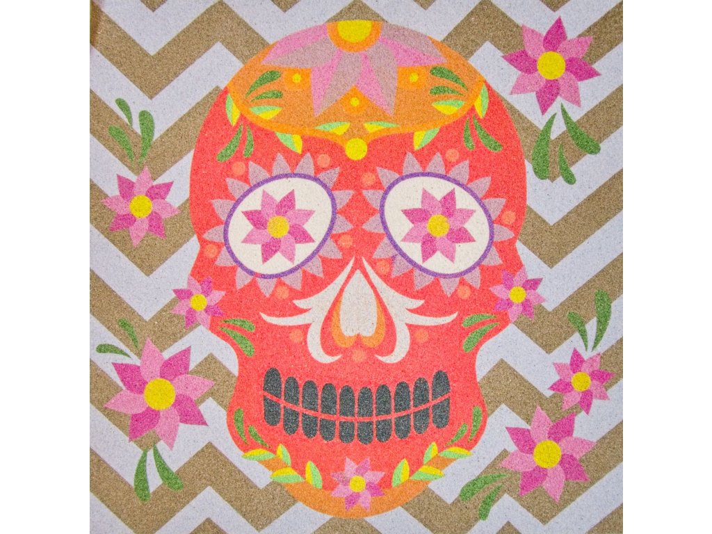 Samolepící šablona lebka 2 mistrně zachycuje živou atmosféru mexické kultury, kde se každý detail stává součástí jedinečné harmonie mezi úsměvem lebky a okouzlující květinovou výzdobou. Výsledné dílo září energií, optimismem a pestrou paletou barev, čímž každému projektu vdechuje nádech radosti a tradičního kouzla.