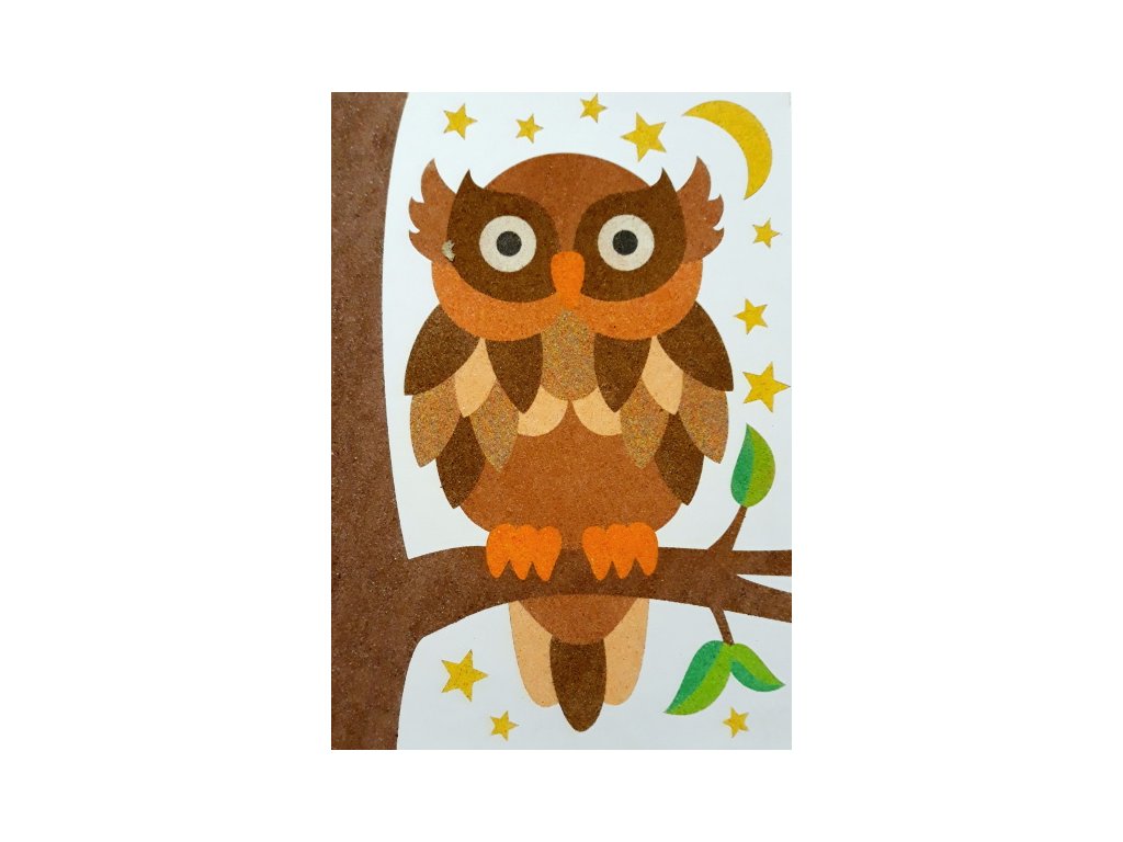 Na odkrytou část lepící plochy nasypeme písek dle vlastního výběru. Volit lze z více než 50 barevných odstínů, třpytek nebo svíticího písku. Písek lze aplikovat pomocí prstů či různých nástrojů včetně obyčejné lžičky.