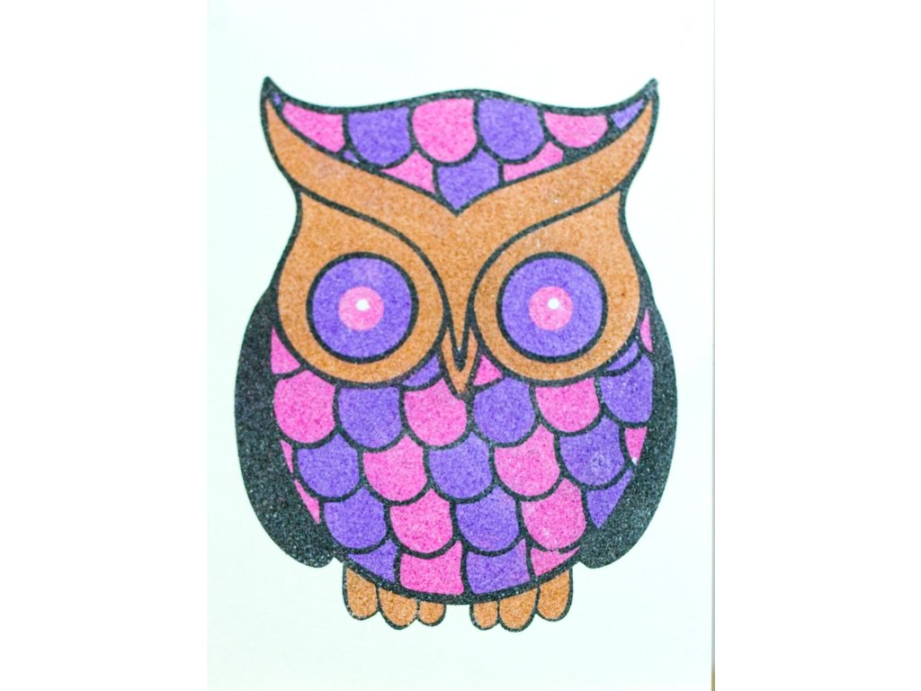 Na odkrytou část lepící plochy nasypeme písek dle vlastního výběru. Volit lze z více než 50 barevných odstínů, třpytek nebo svíticího písku. Písek lze aplikovat pomocí prstů či různých nástrojů včetně obyčejné lžičky.