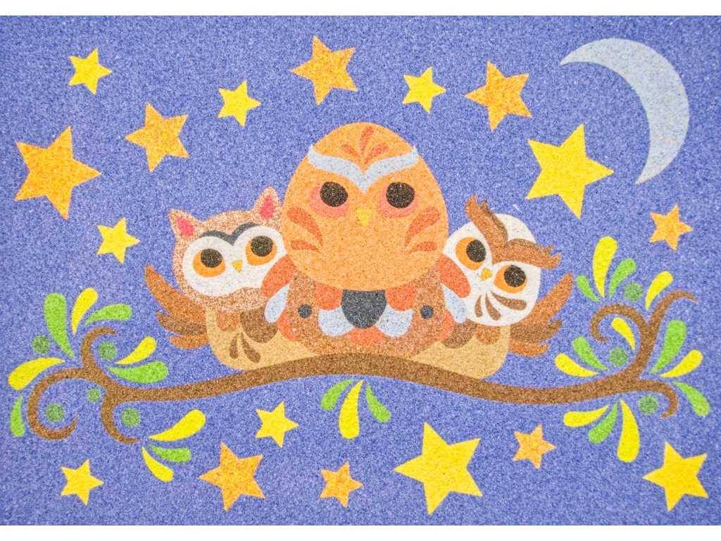 Na odkrytou část lepící plochy nasypeme písek dle vlastního výběru. Volit lze z více než 50 barevných odstínů, třpytek nebo svíticího písku. Písek lze aplikovat pomocí prstů či různých nástrojů včetně obyčejné lžičky.