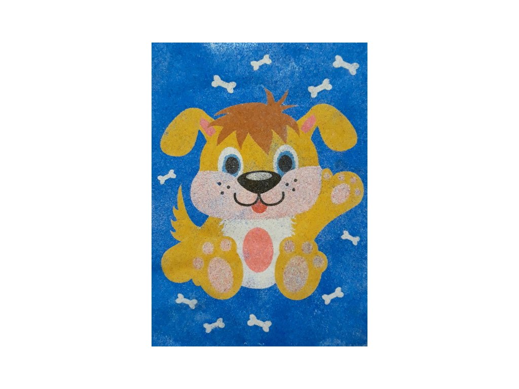 Na odkrytou část lepící plochy nasypeme písek dle vlastního výběru. Volit lze z více než 50 barevných odstínů, třpytek nebo svíticího písku. Písek lze aplikovat pomocí prstů či různých nástrojů včetně obyčejné lžičky.