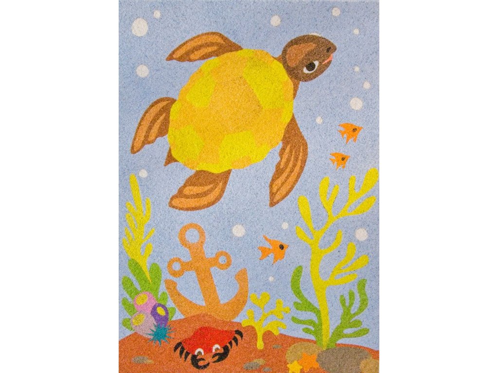 Na odkrytou část lepící plochy nasypeme písek dle vlastního výběru. Volit lze z více než 50 barevných odstínů, třpytek nebo svíticího písku. Písek lze aplikovat pomocí prstů či různých nástrojů včetně obyčejné lžičky.